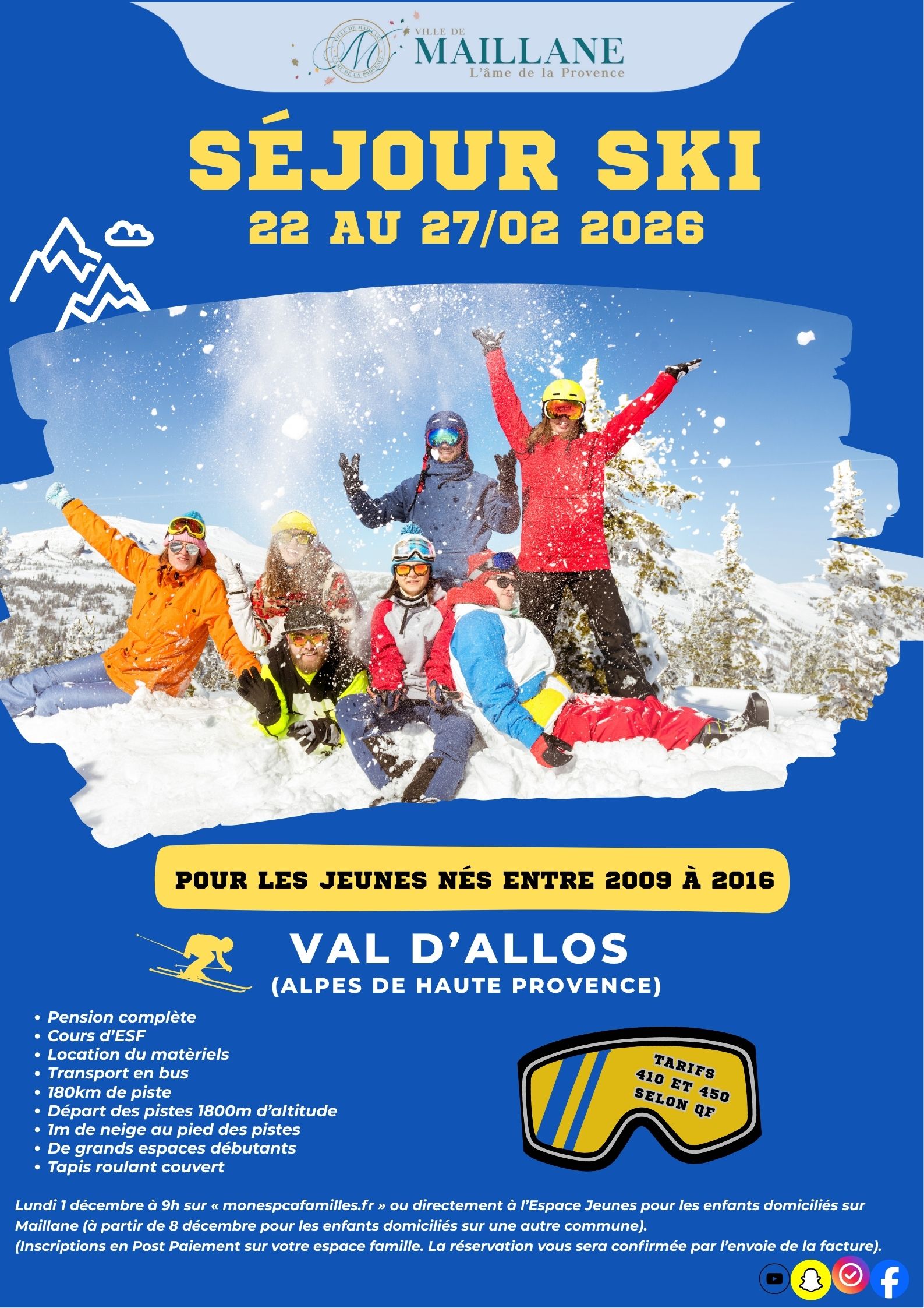Séjour Ski Hiver 2026 Espace Jeunesse (2009 à 2016)