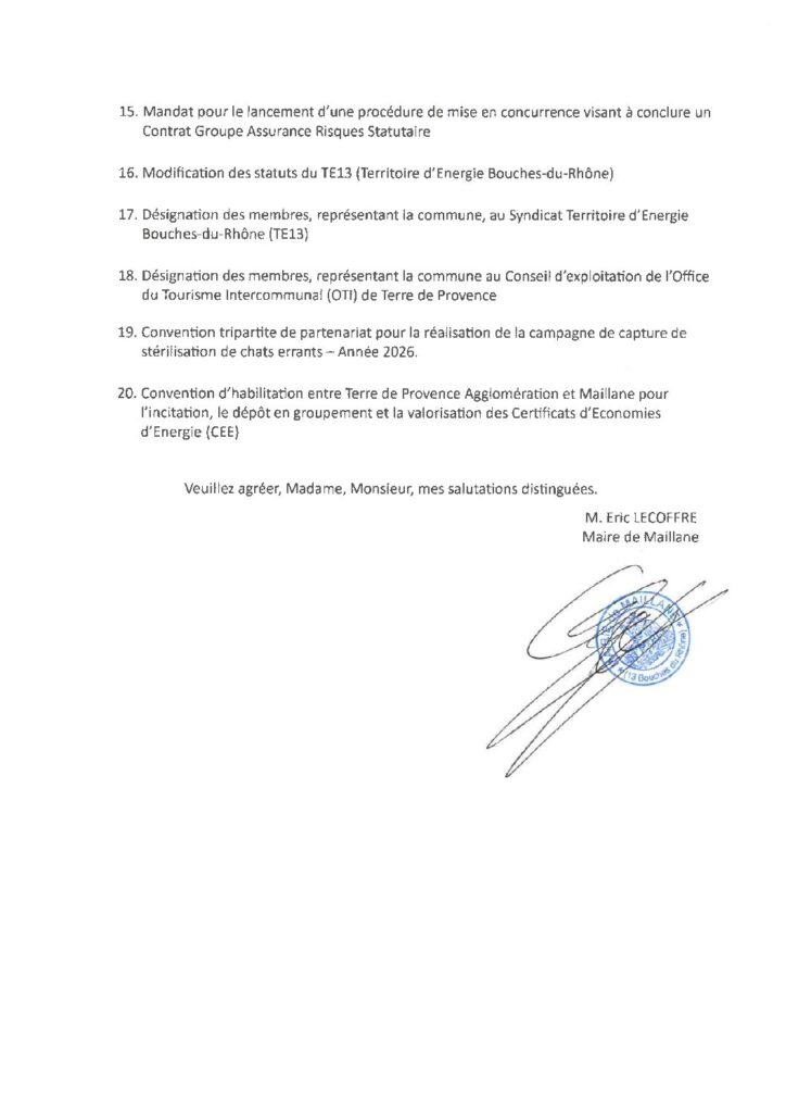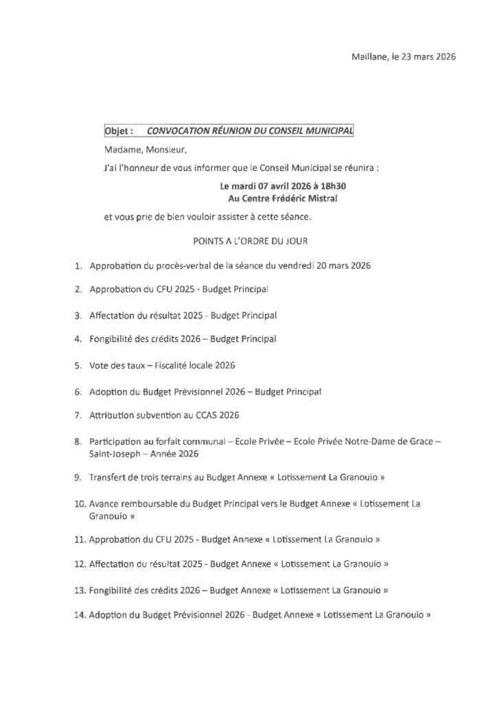 Convocation Réunion du Conseil Municipal du 07 avril 2026