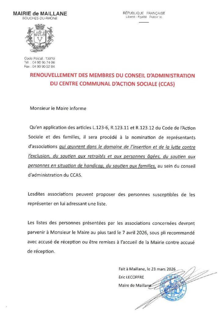 Renouvellement des Membres du Conseil d'Administration du Centre Communal d'Action Sociale (CCAS)