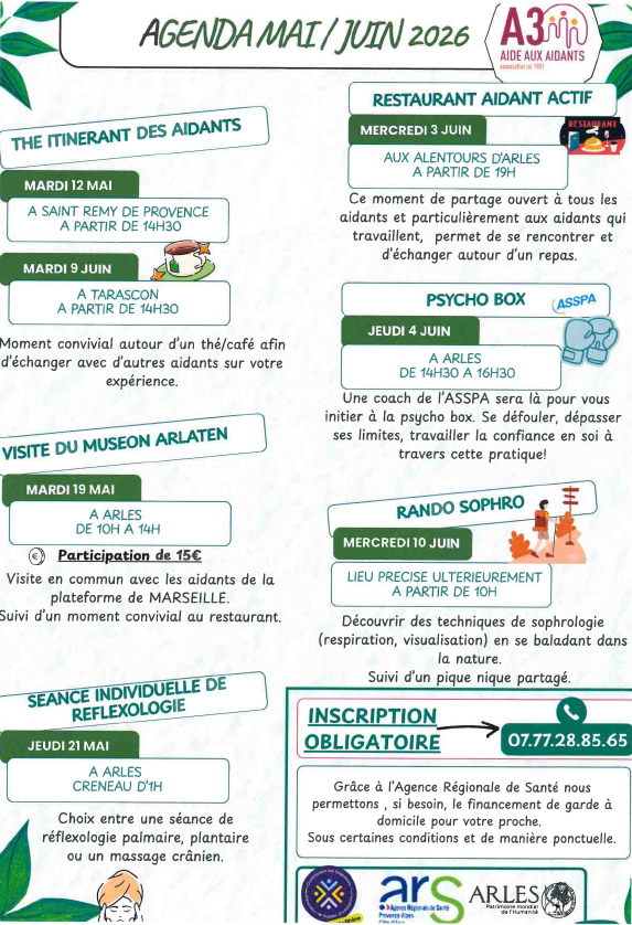 Agenda Aide aux Aidants Mai/Juin 2026
