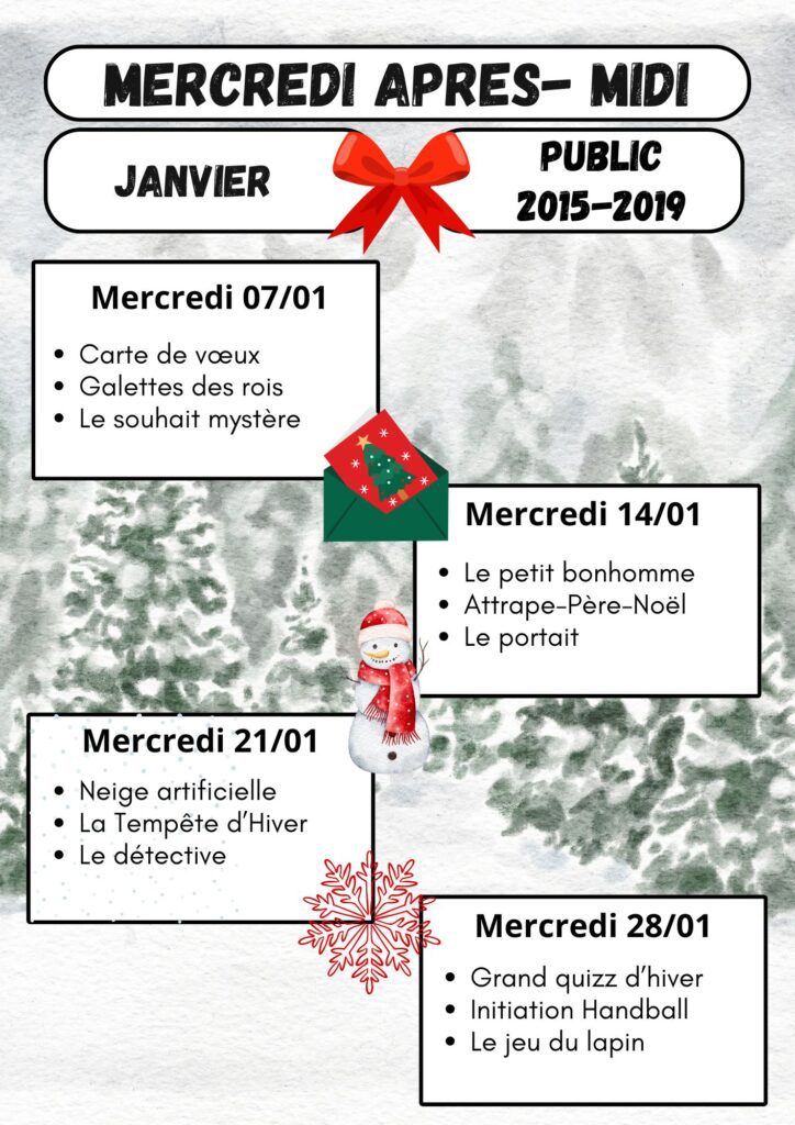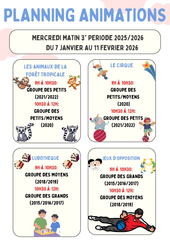 Planning Animations 3° période Mercredi Matins du 07/01 au 11/02/2026 (2015 à 2022)