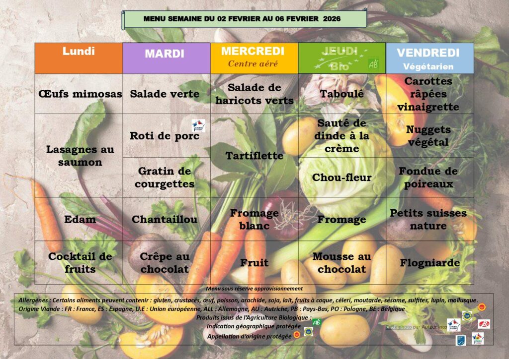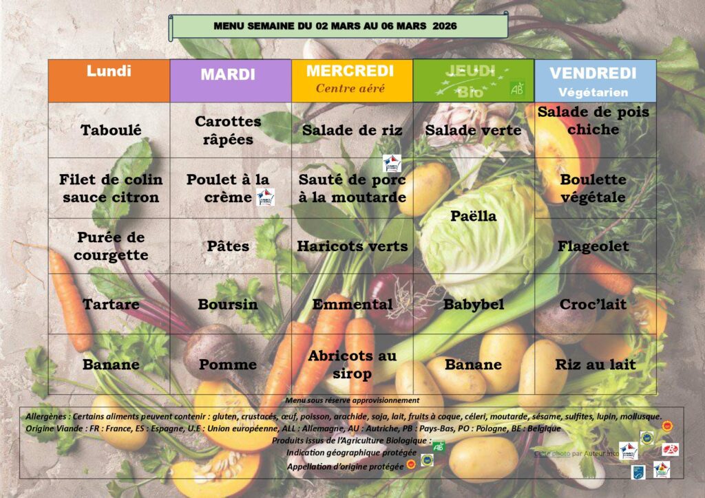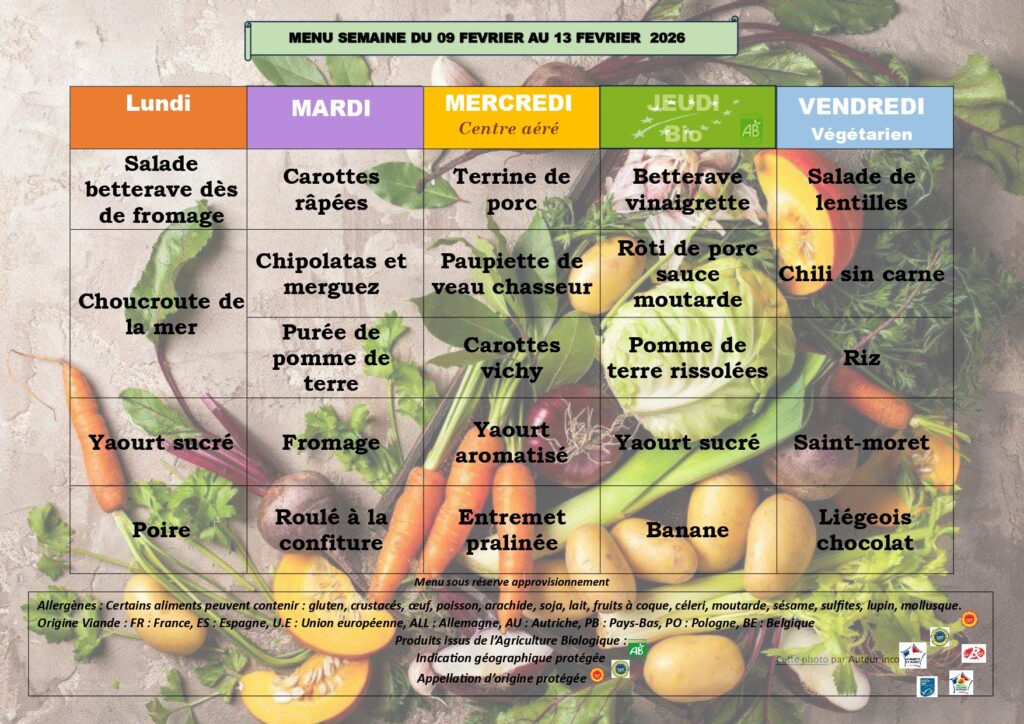 La cantine scolaire fonctionne les jours où l’école est ouverte toute la journée, le lundi, mardi, jeudi et vendredi.
